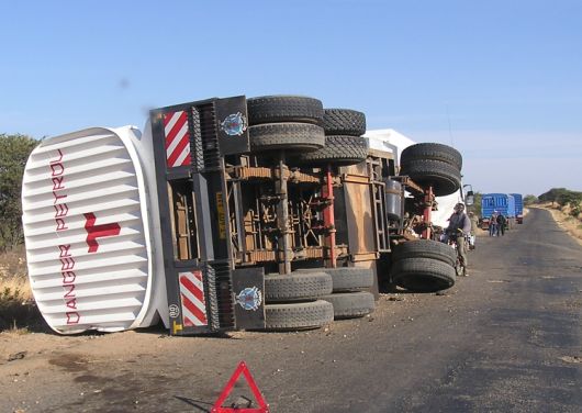 The high way to the south is a good tarmac road. Busses, trucks and small cars are driving so fast.