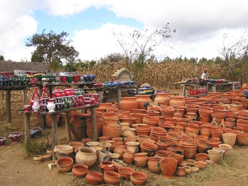 Beside the main road women are selling their pieces of art, smaller or bigger, painted or not-painted, nice clay pots. Previous Next
